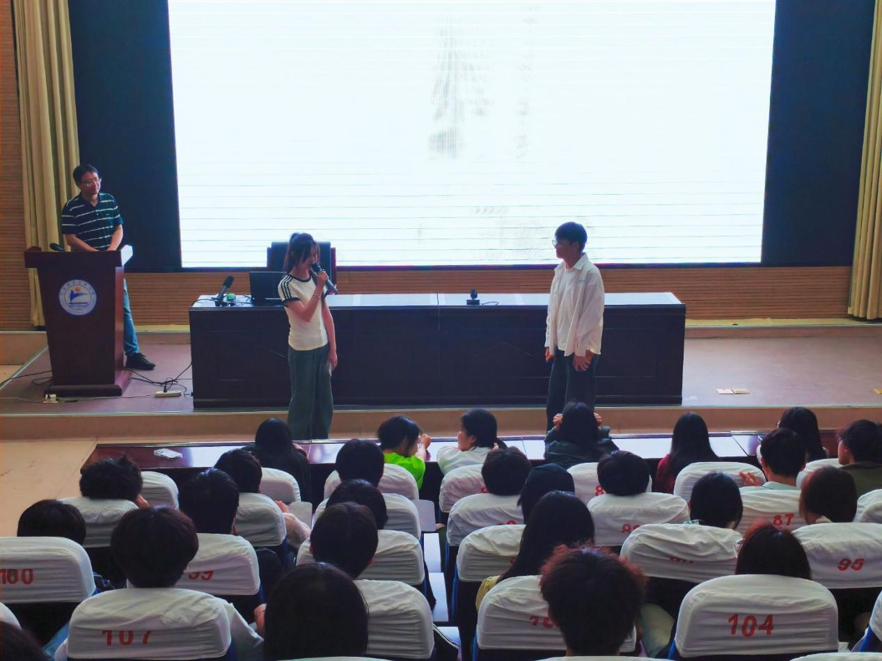 讲座中,陈志平从关注心理健康、了解自身潜意识、与危机共同成长等方面,介绍了大学生如何做好个人心理保健的知识。围绕大学生常见心理危机的识别与干预策略,重点讲解了班级心理委员、宿舍心理气象员在发现危机时的有效做法。结合学生互动实际,通过“情景表演”方式,让班级心理委员现场展示“倾听-共情-积极关注”的谈心互助法,让师生们掌握心理健康工作中有效的工作技巧。