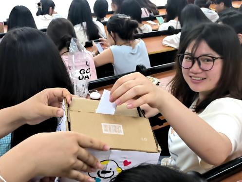 5月21日,学院组织开展一场充满创意与温情的心灵之旅。同学们领取素白石膏模型后,用五彩斑斓的丙烯颜料进行自由创作,每一件作品都成为他们独特心情的生动写照;活动现场还设置了暖心盲盒互动环节,大家随机抽取盲盒中真诚的祝福,现场洋溢着温暖而欢乐的氛围。