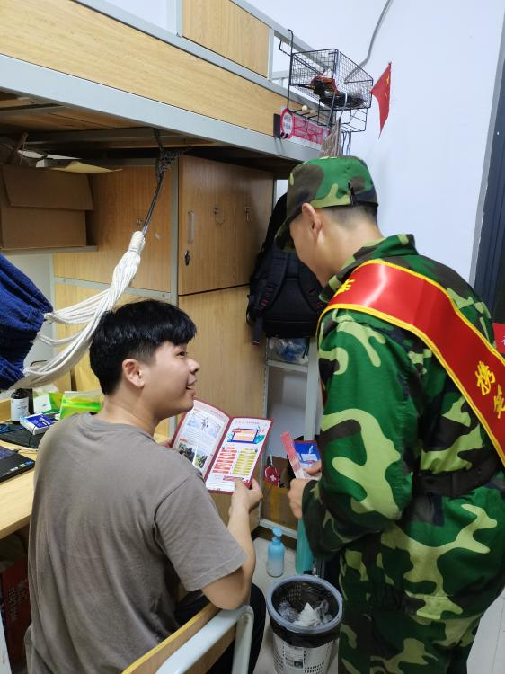 本网讯(信息工程学院)6月10日晚,信息工程学院在濂溪校区学生宿舍开展“征兵政策进宿舍”主题宣讲活动,该院负责征兵工作的辅导员秦钰带领征兵宣传骨干学生一同参加。