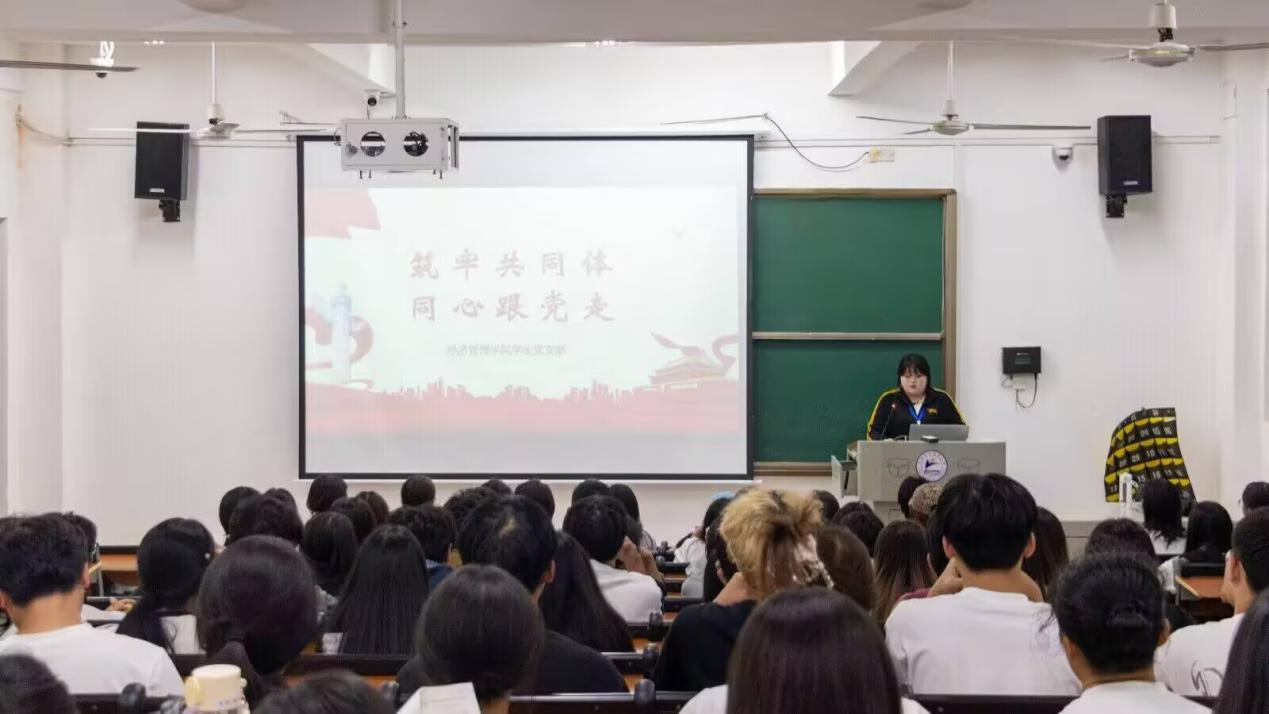 本网讯(经济管理学院)9月21日晚,经济管理学院学生党支部在濂溪校区教学楼128教室举办“铸牢共同体、同心跟党走”主题党日活动,该支部全体党员、入党积极分子参加。