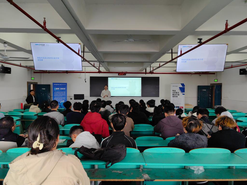 活动现场,诺瓦星云的企业工程师通过精彩的宣讲,系统介绍了公司在全球光电显示控制领域的技术优势与发展前景,详细解读了“光电显示技术”微专业的课程设置、培养目标及未来的就业方向。在随后的互动答疑环节中,同学们围绕专业知识要求、技能储备、职业发展路径等问题踊跃提问,企业代表均给予了耐心细致的解答。现场气氛活跃,交流热烈,激发了同学们对光电显示技术的浓厚兴趣,也让他们对未来的专业学习和职业规划有了更清晰的认识。
