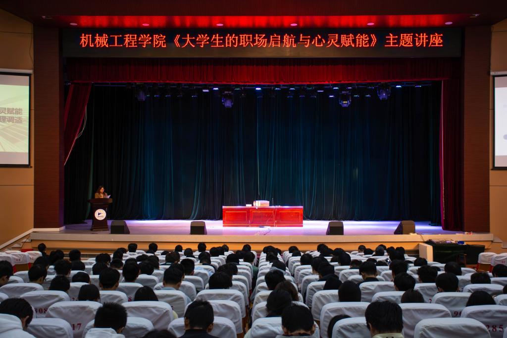 本网讯 (机械工程学院) 为帮助毕业生从容应对毕业季挑战,顺利迈入职场新征程,10月28日下午,机械工程学院在十里校区大礼堂举办了以“大学生职场起航与心灵赋能”为主题的心理辅导讲座。本次讲座特邀学工处副处长兼马克思主义学院党支部书记陈志平老师担任主讲,吸引了众多毕业生积极参与。