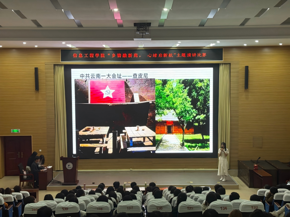 本网讯(信息工程学院)10月29日晚,信息工程学院在濂溪校区办公楼报告厅举办“乡情融新苑,心绪启新航”新生心理赋能活动。10位来自不同地方的新生代表以家乡文化为情感纽带,引导新生在分享与交流中促进心理适应,实现从“思乡怀旧”到“主动融入”的积极转变。