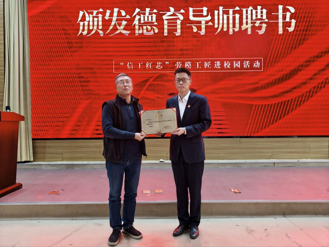 讲座结束后,该院党总支书记刘浩为屈勇颁发“江西职业技术大学电子信息工程技术专业群德育导师”聘书。