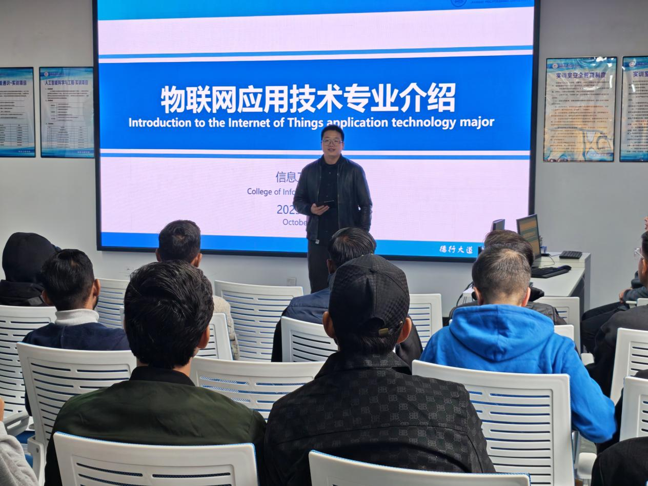 本网讯(信息工程学院)为助力新入学的巴基斯坦留学生迅速适应新环境、融入校园生活,10月31日下午,信息工程学院在濂溪校区科创楼会议室开展物联网(巴)2401班“开学第一课”暨入学教育活动。该院党总支书记刘浩、副院长王法强出席,物联网应用技术专业教师、辅导员及16名巴基斯坦留学生参加。