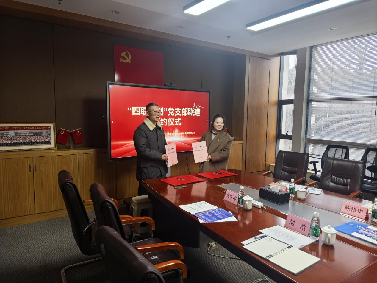 在江西科骏实业有限公司,双方签订了“四联同创”校企党支部联建协议,明确汇聚双方支部资源,发挥支部联建效能,形成“1+1>2”的效果,以促进在人才培养、科研合作、实习就业等方面产出成果。