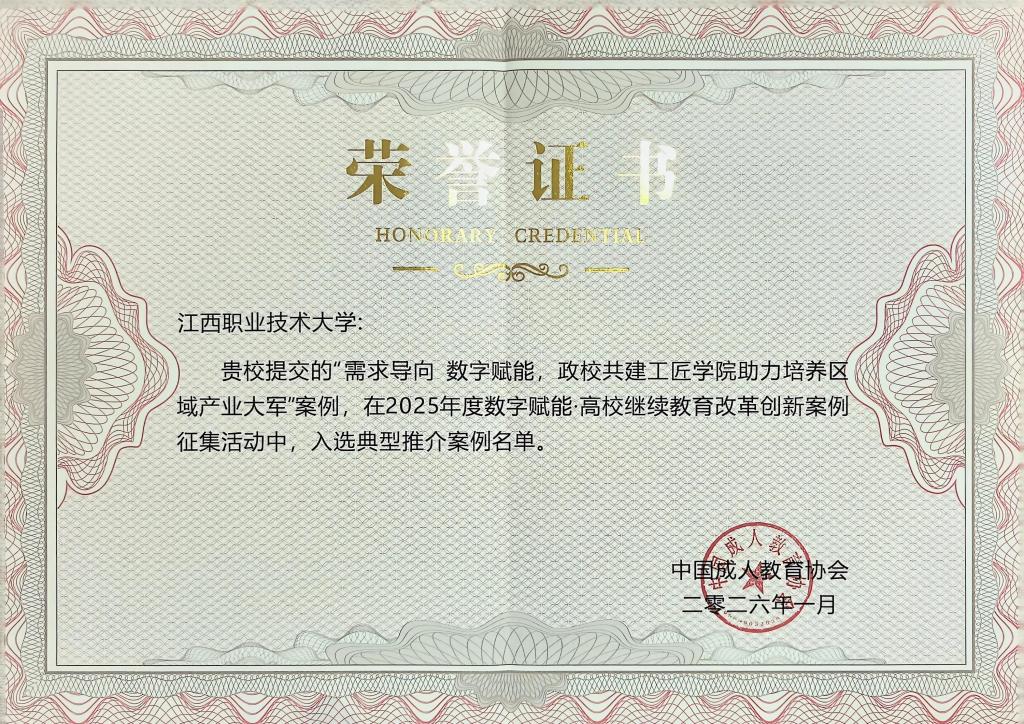 学校始终高度重视继续教育改革创新工作,坚持把服务国家战略、融入区域发展作为办学重要方向。此次案例成功入选,充分彰显了学校主动对接产业升级与人才需求、深化产教融合的务实成效,也是我校依托政校共建 “工匠学院” 模式,规模化、系统化培养高素质技术技能人才的重要实践成果。