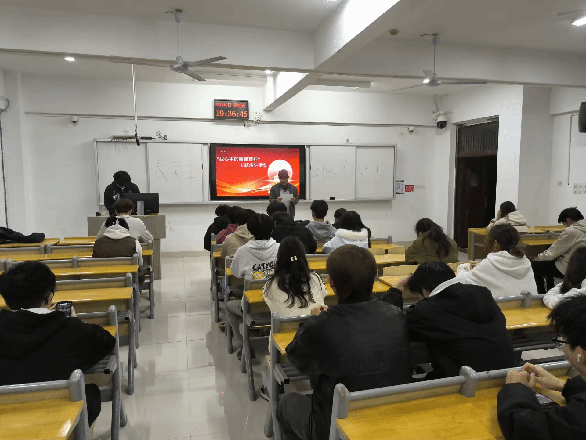 本网讯(电气工程学院)3月22日19点30分,电气工程学院晖虹学生文学社在濂溪校区科创楼A411教室开展“我心中的雷锋精神”主题演讲活动。此次活动由社团指导老师王升主持,50余名社团成员参与。