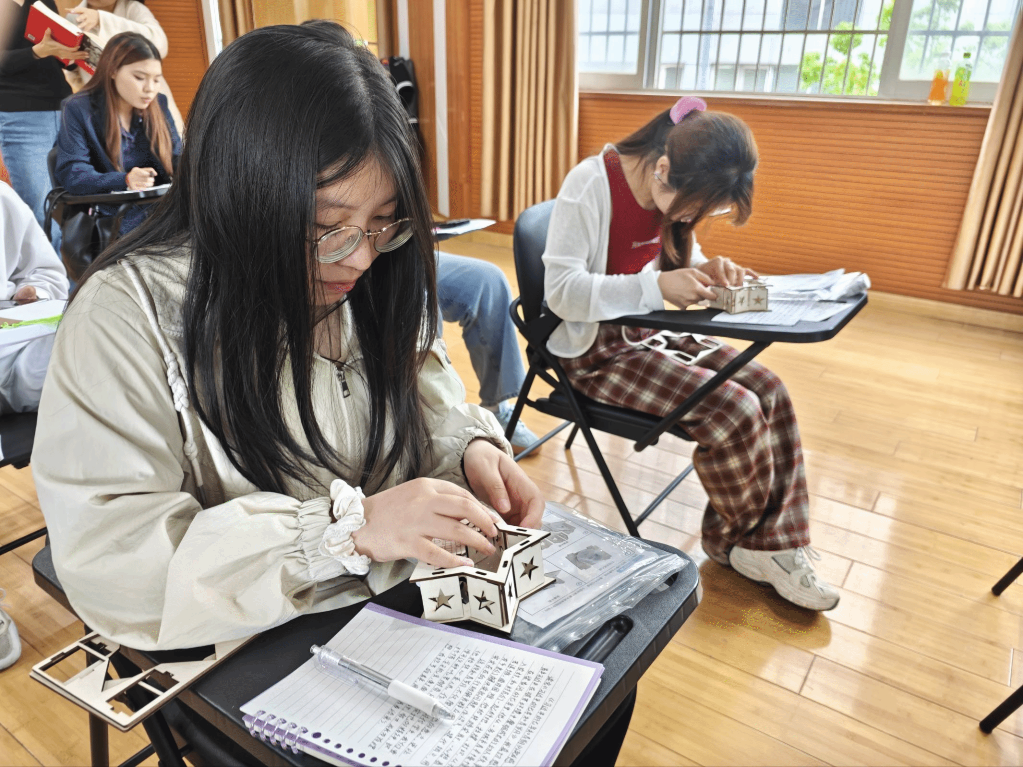 为巩固学习成效,活动设置知青岁月知识有奖竞答,题目紧扣关键事件与核心精神内涵,同学们踊跃抢答、以答促学,在互动中深化理解。问答环节后,创意 DIY 实践环节正式开启:大家动手制作梁家河情景定制拼图,在拼合中再现知青往事;制作星灯,以点点微光致敬知青精神;创作主题书签,将学习感悟与青春誓言凝于笔端。动手实践与理论学习深度融合,让红色记忆可感可触、入脑入心。