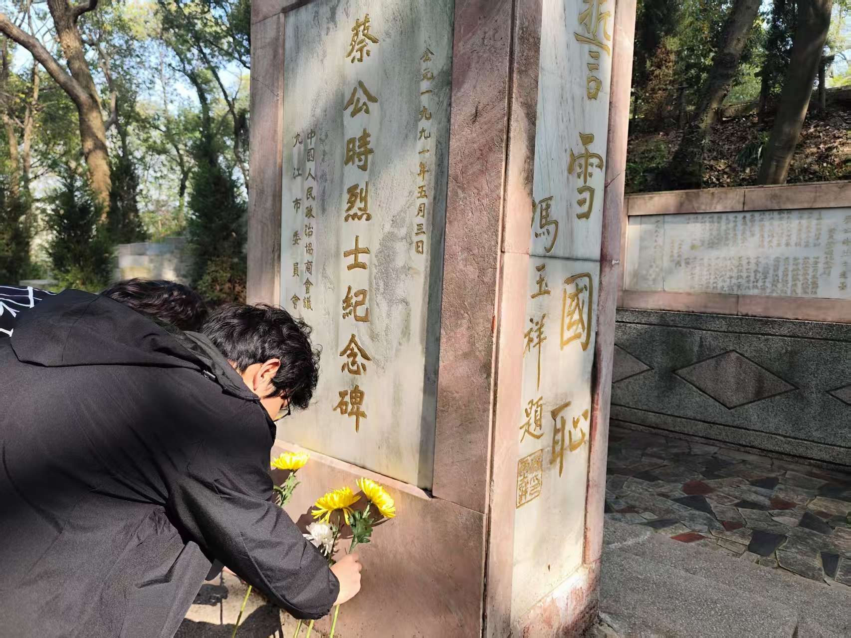 4月1日下午,学院青年学子怀着崇敬之心来到甘棠公园烈士纪念塔。全体成员整齐列队,向烈士默哀致敬,依次敬献鲜花,深情缅怀为国家独立、民族解放英勇献身的革命先烈。在纪念碑前,全体党员面对鲜红党旗,高举右拳,重温入党誓词,铿锵誓言表达了继承先烈遗志的坚定决心。团员代表深情讲述英烈事迹,带领大家共同学习九江近现代重大历史事件,重温革命先辈浴血奋战、坚守信仰的峥嵘岁月,在场青年无不动容。