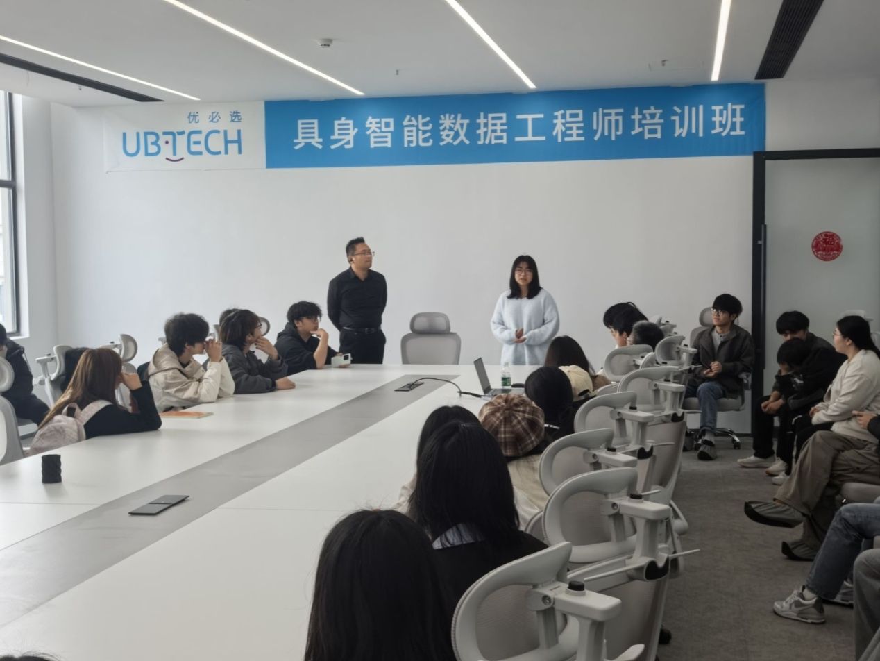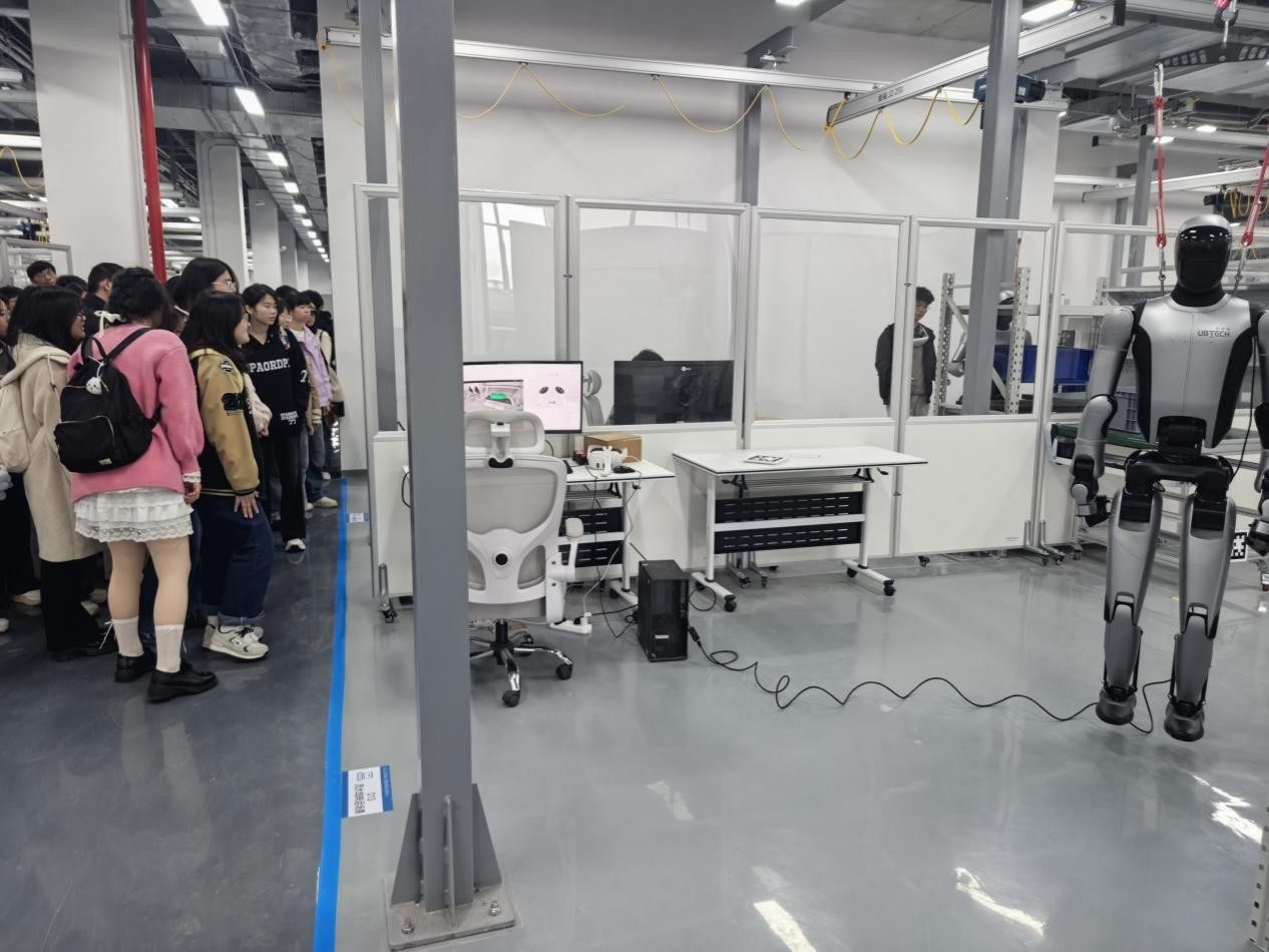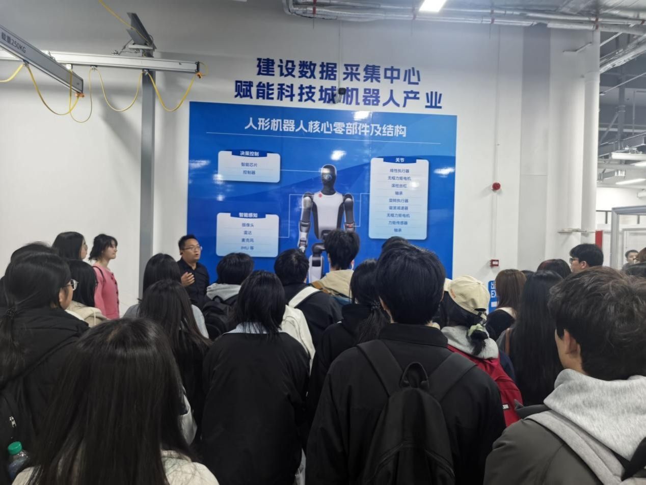 本网讯(信息工程学院)为深化产教融合,帮助大一新生零距离接触行业前沿,提升职业素养,合理规划职业目标,3月25日,信息工程学院组织2025级人工智能专业部分学生前往鄱阳湖生态科技城九江优必选人工智能产业园开展实地参观学习活动。 在优必选(九江)公司工作人员的引导下,师生一行走进优必选人形机器人数据采集及训练中心,现场看到大批机器人正反复练习抓取、分拣、搬运等动作,为进入真实工业场景进行的“岗前培训”。