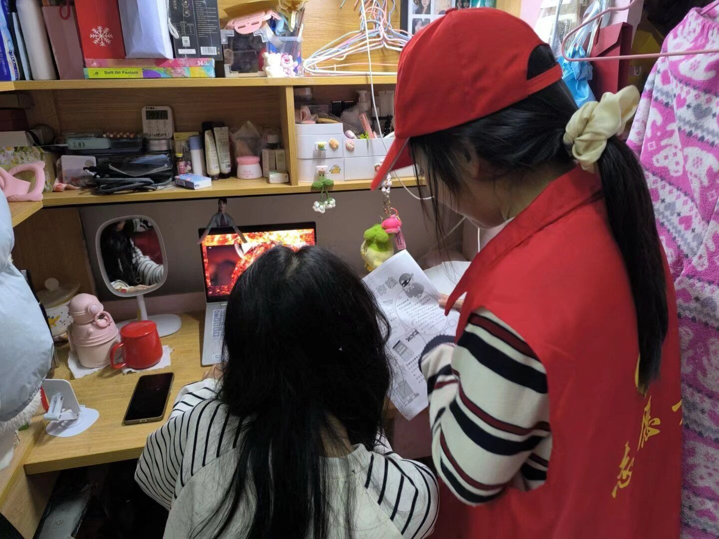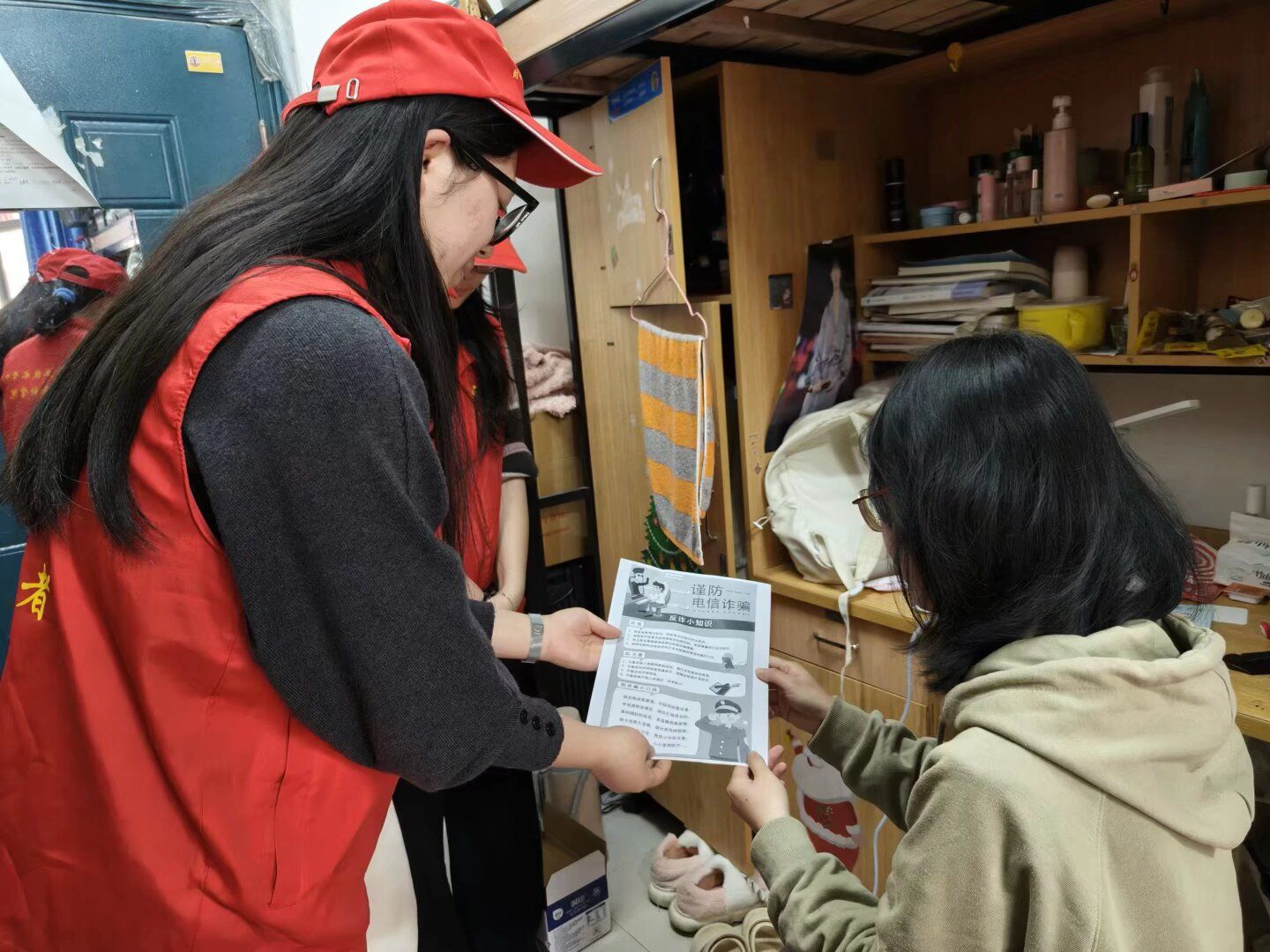 活动中,志愿者们在支部党员带领下逐一走访学院各栋宿舍楼,深入学生宿舍派发反诈宣传单,围绕刷单返利、冒充客服、网络贷款、虚假交易等校园高发诈骗类型,详细讲解诈骗手法、话术特征及防范要点。大家结合发生在校园周边的真实案例,耐心解答同学们的疑问,提醒大家做到“不轻信、不透露、不转账”,切实提升反诈防骗意识与自我保护能力。志愿者们还现场推广了“国家反诈中心”APP的防护功能,指导同学们开启来电预警,为校园安全装上“防护锁”。