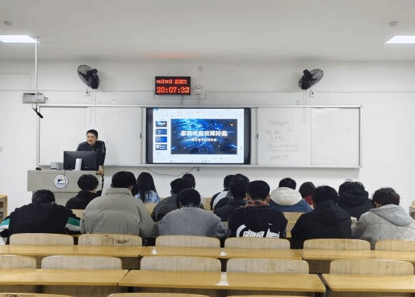 本网讯(电气工程学院)3月25日19时30分,电气工程学院在濂溪校区科创楼A604教室顺利开展“家庭电路故障排查”专题讲座。此次讲座由该院学生电子科技协会承办,社团指导教师华有斌担任主讲人,社团30余名成员到场聆听、参与学习。
