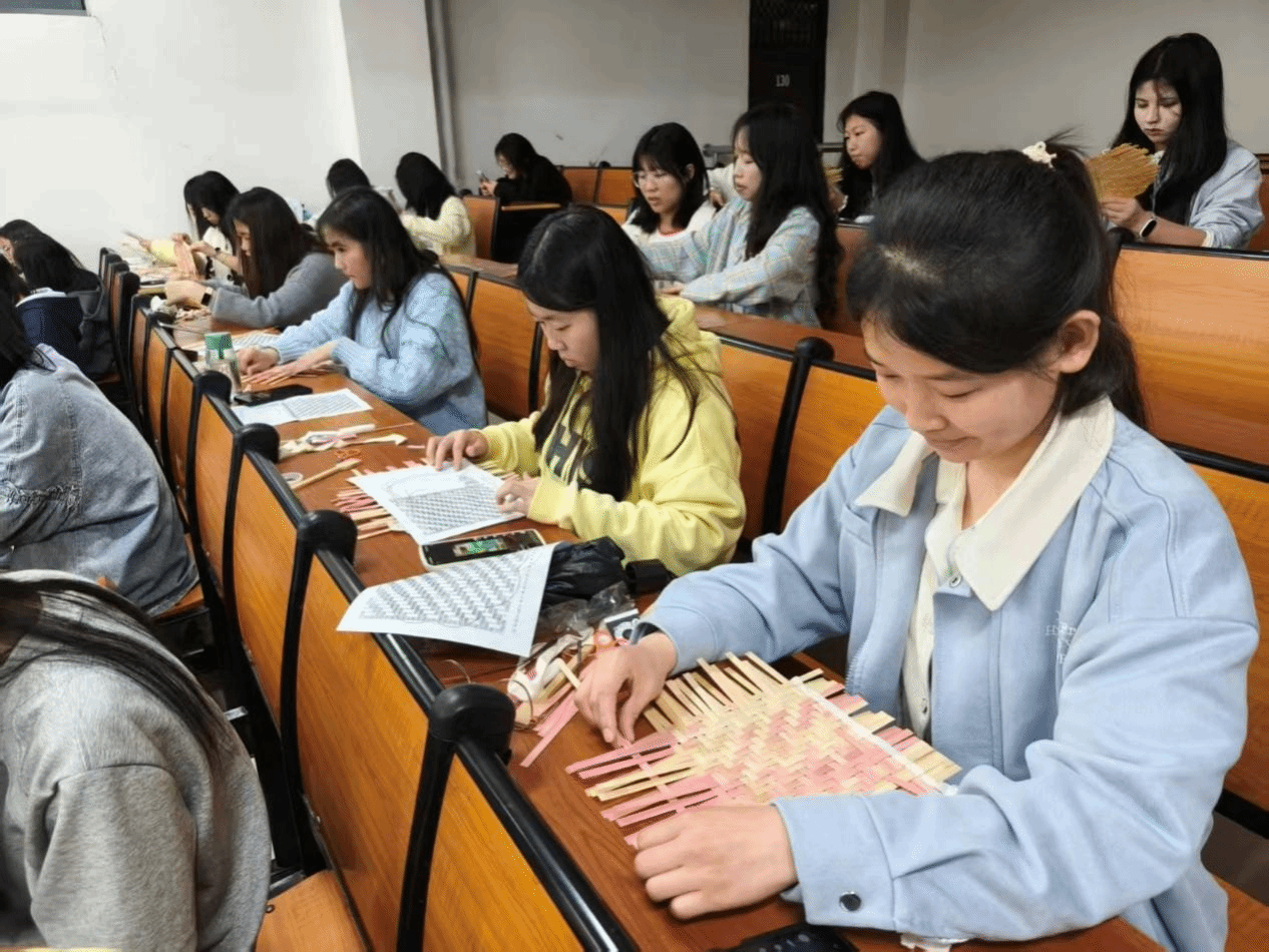 本网讯(信息工程学院)4月10日晚,信息工程学院清和汉韵文化传播学生协会、院宿舍管理委员会、院素质拓展中心在濂溪校区教学楼教室联合开展“指尖经纬,非遗传承”主题非遗竹编体验活动,近50名同学参与。