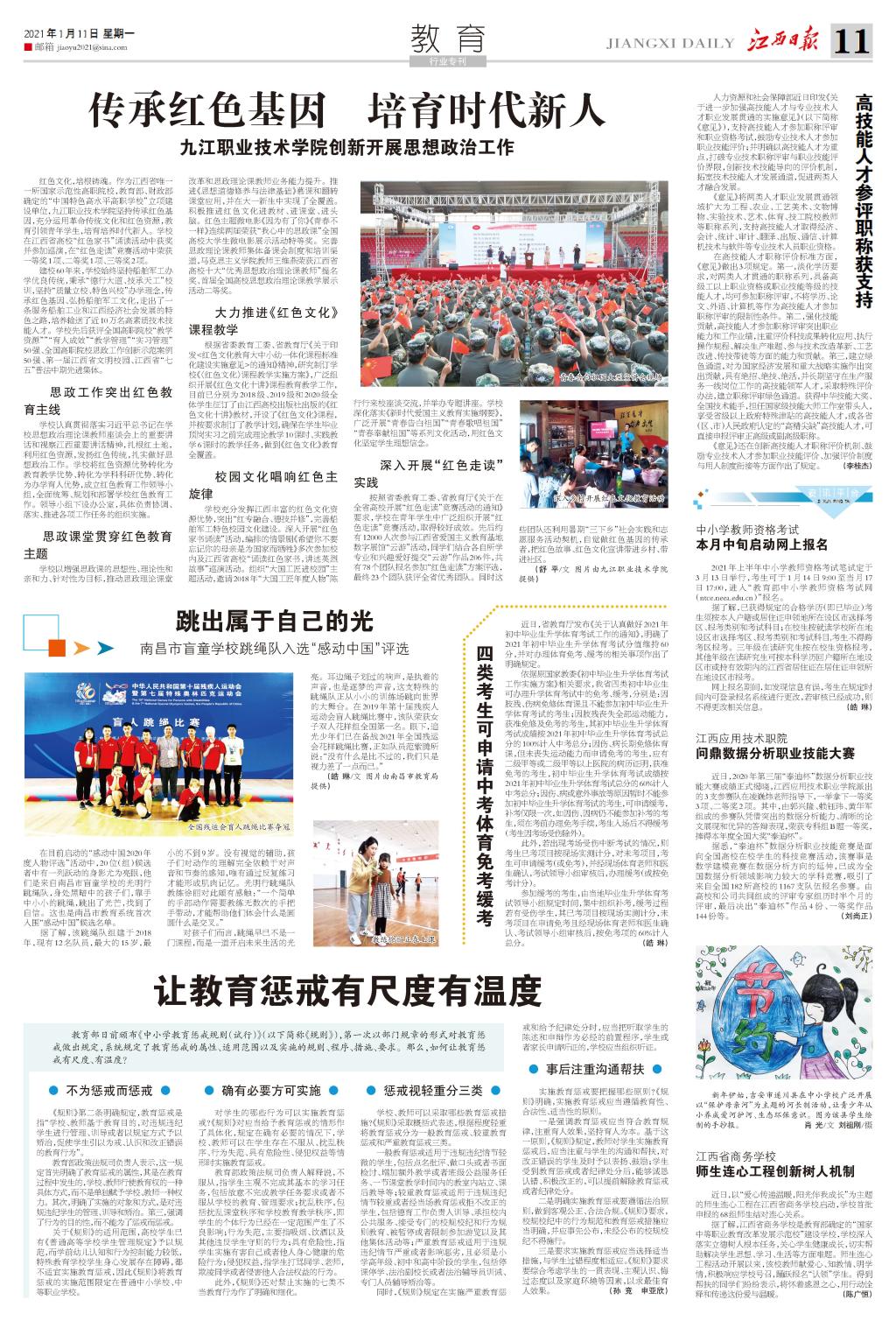 《江西日报》2021年1月11日11版版面头条报道